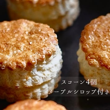 軽くて喉越し・口溶けのよいように配合したスコーンです。粉自体が甘いキタノカオリ(国産小麦粉)に軽い仕上がりになる北米産の薄力粉を配合。A2牛乳、良質なバターと卵で仕込みました。カナダ産の純メープルシロップをおつけします。